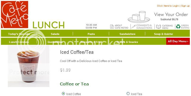 There's only one hitch: sometimes I like a little midday ice coffee pick-me-up. The convenience of online lunch shopping is that you can order the ice coffee and select from a menu what kind of milk and sweetener you want.